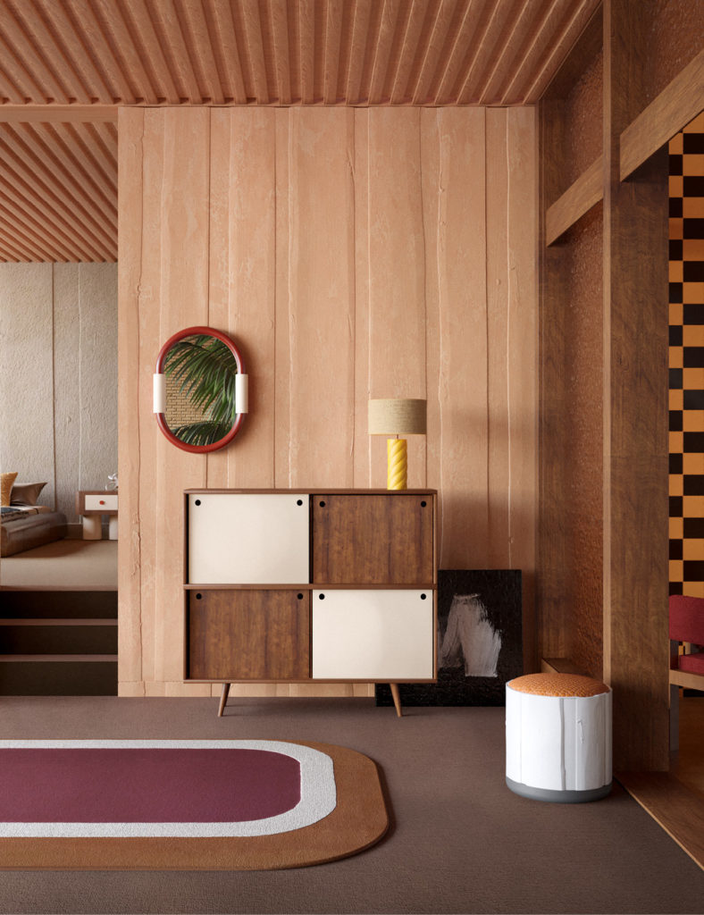 Pour Daniel Klopper, tout a commencé à l’âge de treize ans, lorsque son père lui a offert son tout premier ordinateur. Alors fasciné par les économiseurs d’écran et les jeux sur disquette, il recrée des visuels numériques avec ses premiers logiciels de modélisation. Plus tard, c’est la musique qui le fait entrer dans le design. Alors qu’il conçoit des pages Myspace, il se met à dessiner des vêtements pour l’industrie musicale. De fil en aiguille, il devient designer spécialisé dans la conception de produit et la visualisation 3D. Aujourd’hui basé à Cape Town, Daniel Klopper travaille sur des applications mobiles pour GoDaddy Studio. À côté, il imagine des intérieurs 3D aux inspirations scandinaves et Japandi. Des mondes oniriques souvent infusés d’essences de bois et contrastés de touches béton brut, de plâtres, ou d’objets colorés à l’instar de ce décor 3D imaginé pour GOODMOODS Éditions. Visite.