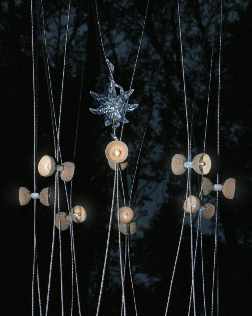 En parrainage avec le Lit National, Thomas Takado, Grand Prix Design Parade Toulon Van Cleef & Arpels 2025, présente une installation mêlant matériaux végétaux glanés dans les alentours de la villa Noailles — feuilles, branches, cailloux — et structures métalliques standardisées. En confrontant la fragilité du vivant à la rigueur de l’industrie, il compose des assemblages en équilibre instable, où la nature se plie aux contraintes de la forme. Une œuvre à la fois poétique et critique, qui interroge la matérialité contemporaine et redonne corps à l’organique dans le champ de la création.