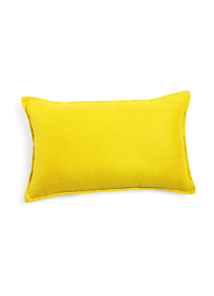 Coussin en lin lavé jaune